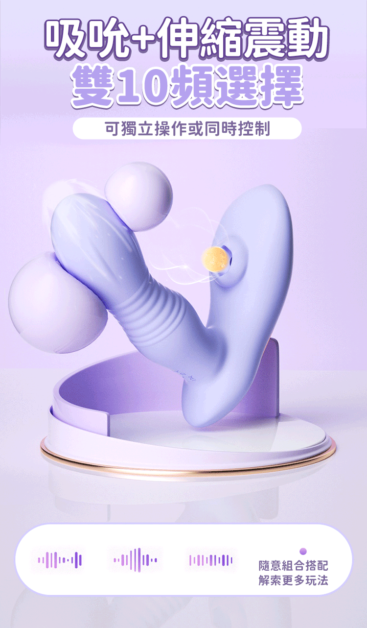10頻吸吮 × 10頻伸縮震動,模擬真實節奏,快感隨心切換。