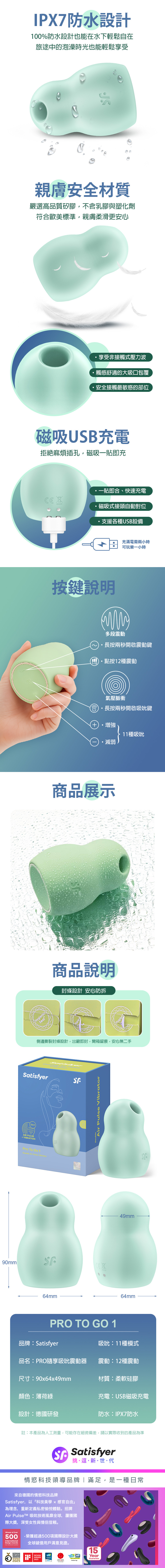 Satisfyer|Pro To Go 1|隨享 吸吮陰蒂震動器 薄荷綠